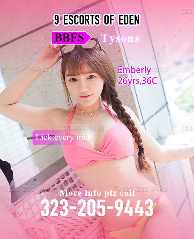 Escort of Eden:Powered by 323-205-9443(1.1-1.10) is the largest sexual desire dealing group for arranging you have the best sexual experience in VA.Escort of Eden has 2 spots for providing 9 gals from different countries.We will arrange you for your favorite "Eve" depends on your needs. # Escort of Eden:Spot of cows,located in Tysons.1 Taiwanese cow Calliope(24 yrs,36D) & 1 Thailand cow Daphne(28yrs,36B) & 1 Korean cow Emberly(26 yrs,36C) Calliope(24 yrs,36D) is the star in this spot.My sweetest cherry mouth give you feeling of warmth and tightness, if you suck me hard, I would give you more. Services including:BBFS,BBBJ,CIM,Shower together,FS. Available time:9:00-0:00 # Escort of Eden:Spot Asian queens,located in Centreville.Attention:Queen Freya(Vietnamese,27 yrs,36C) & Queen Kathleen(Taiwanese,23 yrs,36B) & Queen Rosamund(Korean,21 yrs,36D) & Queen Quenby(Japanese,22 yrs,36D). Queen Freya strong suggest.Free your hands and please just lie down, close your eyes, you won't want my magical hands to stop. Services including:BBFS,BBBJ,CIM,Shower together,FS. Available time:9:00-0:00 And one more gal will be your suprise,come and taste! Follow:Escort of Eden(323-205-9443),get more information to catch you happy!